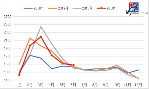 對比庫存和周消費量來看,整體處于微妙平衡的狀態,6-7月的市場整體還是處于略有支撐狀態。而且隨著進入下半年的沖刺階段,整體鋼材需求有可能高于上半年。所以整體的庫存可能在近期回升之后再度下降至年底。