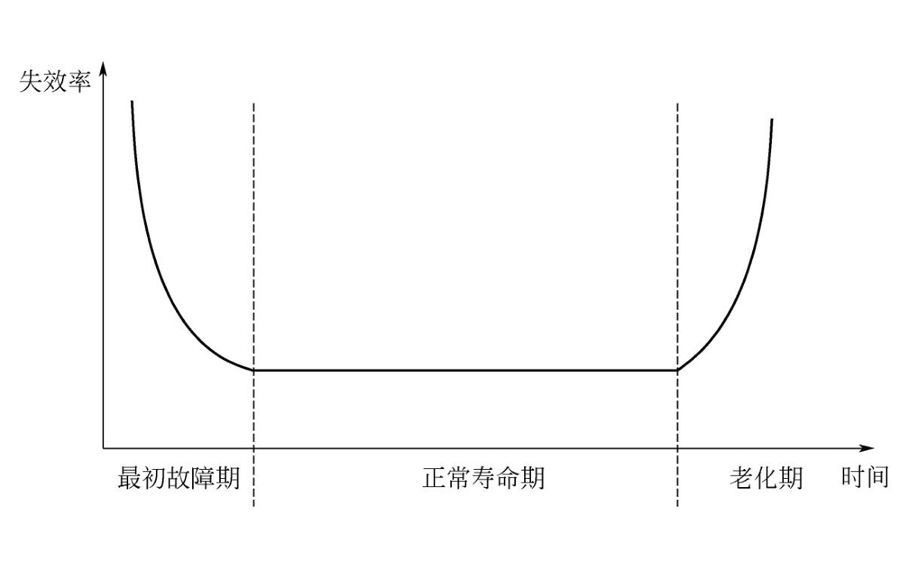 (1)早期失效設(shè)備在最初故障期發(fā)生的失效為早期失效,失效率由大減小。這是因?yàn)樯a(chǎn)出的設(shè)備中有一些存在生產(chǎn)缺陷,隨著它們不斷的暴露出來(lái),失效率就逐漸下降。